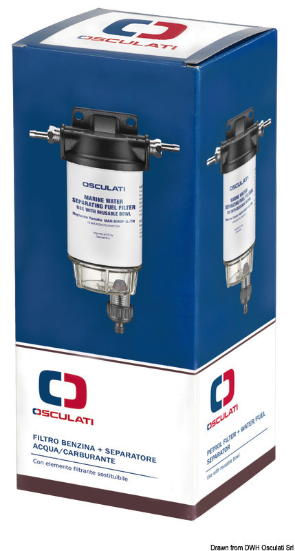 Kütuse separaator filter 10-mikronise elemendiga. Alumiiniumist pea, läbipaistev paak, kiire tühjendussüsteem. Soovitatav mootoritele kuni 200 hj - samaväärne Yamaha 2W-114-00-00-ga. Varustatud 8 mm voolikuadapteriga. Kogukõrgus: 230 mm. Voolukiirus rõhu korral - 0,49 PSI 200 l/h.