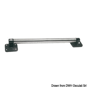 Особо прочный фиксатор люка. Изготовлен из нержавеющей стали, оснащен системой открывания, выдерживает большие нагрузки. Длина: 350 мм, Ø пружины: 22 мм, размер 2 крепежных пластин: 47 x 47 мм.