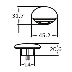 Recessed LED courtesy light chromed/white. Dimensions: 45 x 31 mm, Ø: 14 mm, 15 lumen,12 V.
