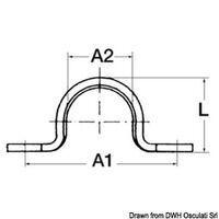 Forged eye bridge is made of stainless steel. A1- 63 mm, A2- 28 mm, L- 28 mm, hole diameter- 5 mm.