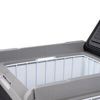 1852 compressor box is perfect for the boat, car, caravan, etc. Compressor boxer 2-piece fridge/freezer: · LCD display/control panel · USB socket for mobile phone charging, lights, tablets, etc. · 3-Step Battery Cover · Both for 12/24 Vdc or 110-240 volts · Compressor cooling or freezing down to -20°C · With LG compressor · Universal power supply for cigar plugs with 2.5 meters of cable · Possibility of operation with integrated battery (battery not included) 95 liters of LED light that lights up when the lid is opened. Equipped with powerful carry handles and display displaying temperature. · The lid can be opened to both sides · Digital panel that allows you to easily and economically control the cooler · Control compressor cooler via the Alpicool app · 2-piece Fridge/freezer or Fridge/Cool - Freezer · Size 826 x 528 x 465 mm (+ 25 mm on each side) · Consumption 6 (12V)/3 (24V) amp - 0.3 kWh/24t Buy a battery, 1283256, for the cooler.