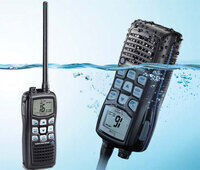 Do you want a radio that floats ?If your radio goes overboard, a floating handheld gives you another chance to avoid a big disappointment and a trip to the store for a new radio. Although floating radios are a relatively recent idea, most of the handheld radios we’re selling now float. Note that there seems to be a trade-off between lightweight, floating radios, and radios with big batteries and the longest battery life, so you have to choose which feature, long run time or a floating radio, you prefer. Some radios has further enhanced their newest handhelds with their “Float ’n Flash” feature. These radios float face-up, and the screen, buttons and several LED lights on the base all flash on and off. Several Standard and West Marine radios include a similar feature, with a flashing red LED on the radio’s base.